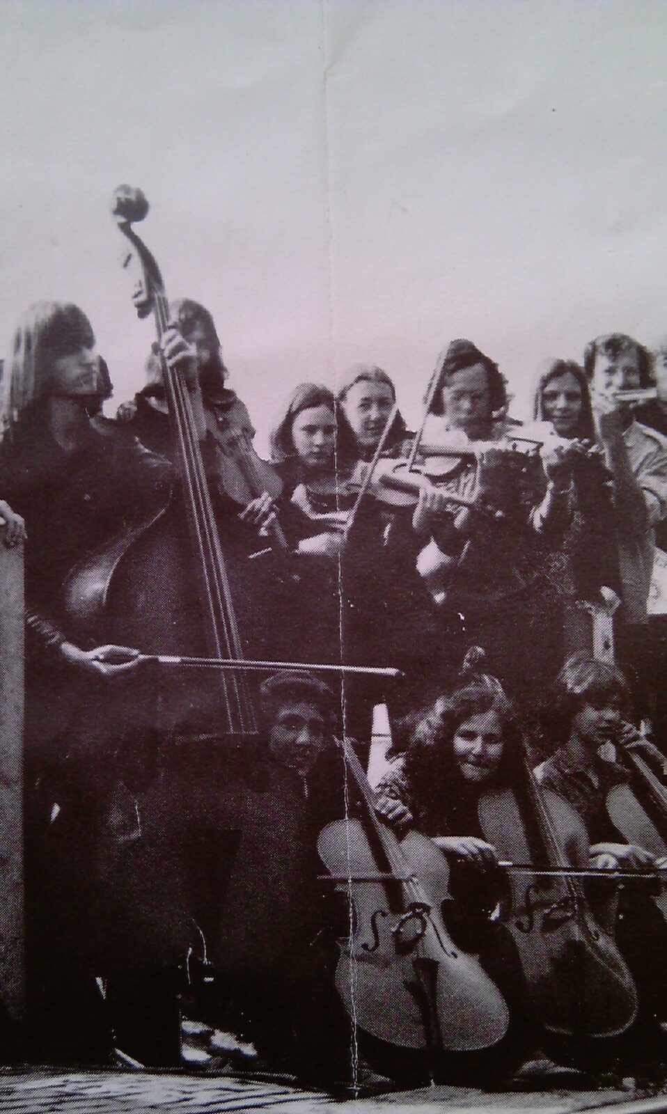After two Saturdays of rehearsals, the group of 12- to 14-year-olds, driven by Jur Naessens, left for Uithoorn in a Transit van. Upon arrival, it became clear that there were no seats for the string players, so they performed standing. Additionally, the stage was still covered in cables and boxes from the pop group that had previously played. As a result, the string players positioned themselves in front of the stage, amidst the audience sitting on the grass. The performance was a complete success.